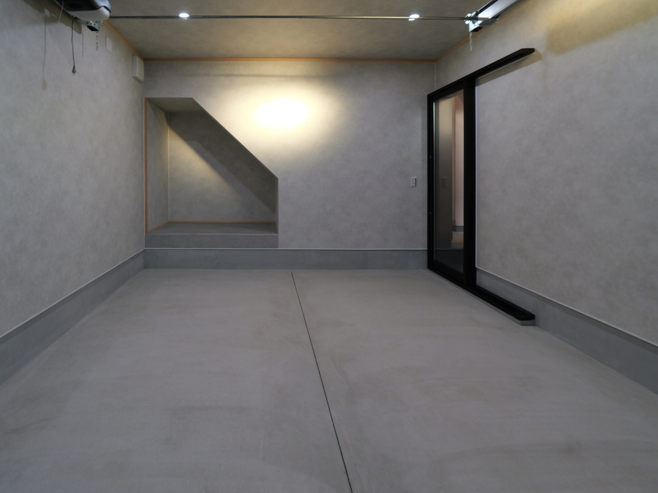 c値0.1の超気密性能を確保しつつ、ガレージと住戸を分ける区画は防火性にも配慮した仕様です。